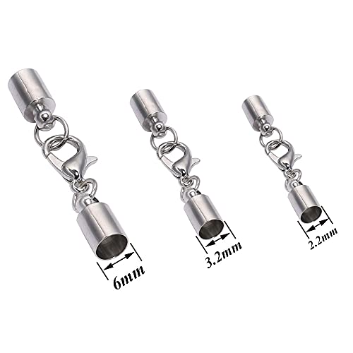 Zasvec Chiusure Braccialetti 15 Pezzi Chiusure Lobster Claw con Cord Ends Chiusure Argente Chiusura Moschettone Chiusure per Braccialetti Ganci Chiusura Collane per Artigianato fai da te 2/3/6 mm