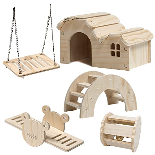 Zasvec Giochi per Criceti in Legno 5 Pezzi Casetta per Criceti Ponte Arcobaleno e Altalena Giocattoli per Criceti Accessori per Criceti Giochi per Criceti Porcellini d'India Gerbilli
