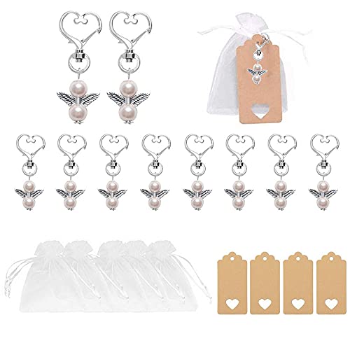 Zasvec 20 pezzi Portachiavi Angelo Set Angioletti per Bomboniere Angelo Custode Perla Angioletti Bomboniere Battesimo con Sacchetto in Organza et Carta Kraft per Regalo di Nozze Gli Ospiti Ciondolo