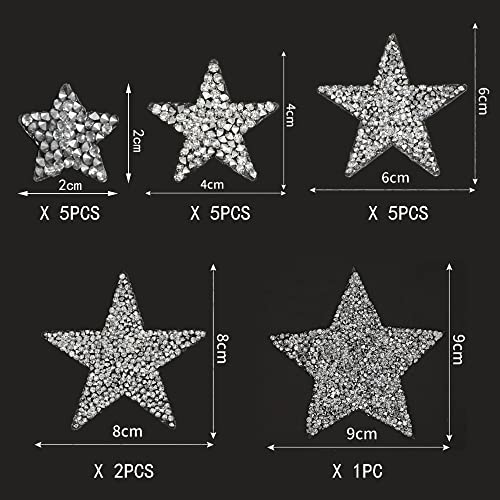 La confezione include: 18 pezzi di toppe di strass a forma di stella in 5 dimensioni, che ti aiutano a fare una varietà di progetti artigianali.