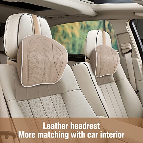 ZATOOTO Cuscino Poggiatesta Auto, Cuscino Memory Foam Cervicale con Cinghia Regolabile, Cuscino Sedile Auto Guidatore in Pelle, Confortevoli e Traspiranti (Beige)