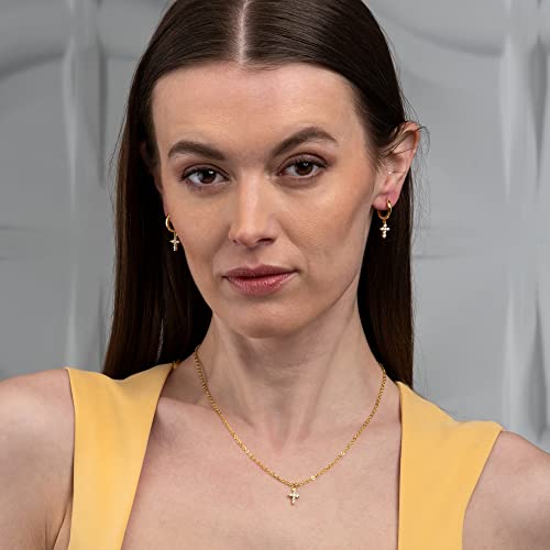 Zavana Orecchini a Cerchio con Ciondolo Pendente a Forma di Croce, Orecchini Cerchio Oro da Donna e Ragazza con Pietre di Zirconi Cubici, Orecchini a Cerchio Piccoli con Croci
