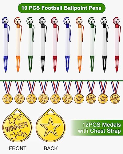 【Perfetto per la tua festa a tema calcistico】sacchetti regalo per feste di calcio da 82 pezzi per bambini composti da 12 palloni da calcio, 10 portachiavi da calcio, 10 braccialetti in silicone, 10 fischietti, 10 medaglie, 10 tatuaggi da calcio, 10 penne da calcio, 10 regali per feste borse. Quantità sufficiente per le tue forniture per feste di calcio. Tutte le decorazioni con elementi di giochi di calcio ti aiutano a creare un'atmosfera visiva speciale.