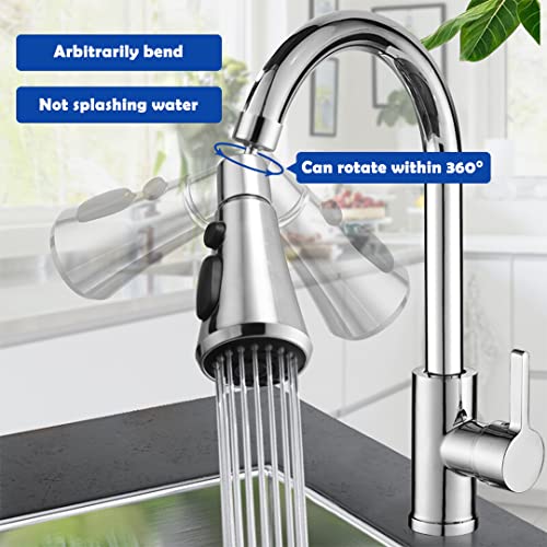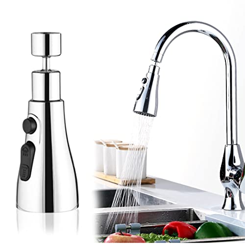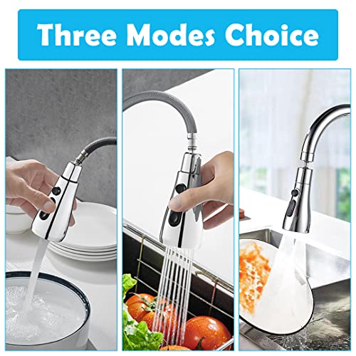 3 Modalità di uscita dell'acqua: questo rubinetto girevole più robusto è dotato di tre modalità di spruzzo d'acqua, flusso di bolle morbido, doccia di potenza e forte flusso d'acqua. La modalità di flusso di bolle morbide è adatta per lavare le mani, il viso. La doccia di potenza può velocizzare le macchie sulla superficie di frutta e verdura. Il forte flusso d'acqua può pulire il piatto, macchie di olio.