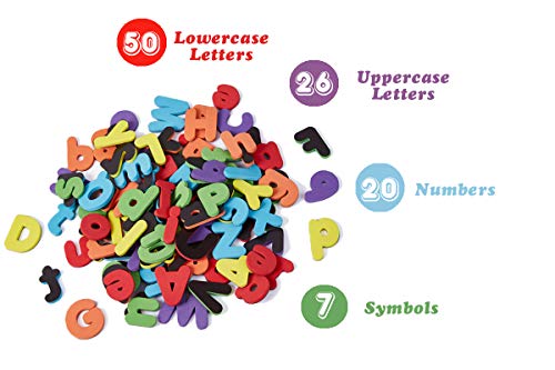Sicuro e durevole: tutti i materiali usati sono sicuri per il gioco dei bambini. I pezzi spessi aiutano i bambini piccoli ad afferrare. I magneti in schiuma leggera rimarranno fissati in posizione su qualsiasi superficie metallica adatta ai magneti, come frigorifero, lavagna magnetica, cavalletto, foglio di biscotti, ecc.