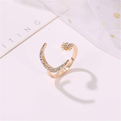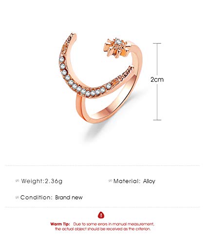 ZBOMR Crescent Moon Star Anello Regolabile, Anello Luna Placcato Argento Anelli Aperti Regolabili con Zirconi Cubici per Donne Ragazze Adolescenti (Rose Gold)
