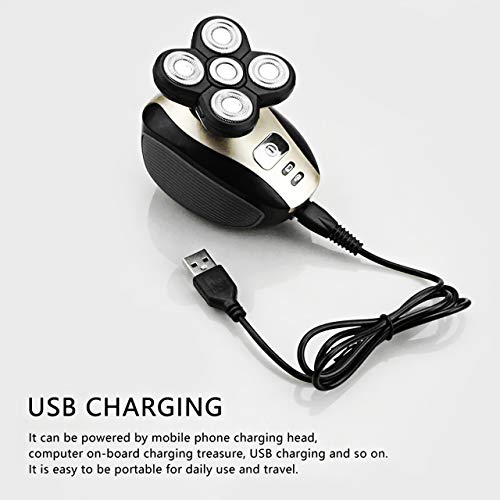 ZCFXGHH Rasoio Elettrico Barba Uomo Impermeabile, 5 in 1 Wet & Dry Rasoio Barbas USB Ricaricabile,Testa Calva Tagliacapelli Rasoio a 5 Testine Rotanti per Capelli Barba Naso Orecchie e Viso Pulito