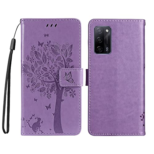 Zchen Cover per Oppo A16s, Cover Oppo A54s, Custodia Cover Protettiva in Cuoio Flip Libro Portafoglio Resistente Antiurto con Supporto per Oppo A16s/A16/A54s (Gatto-Viola)
