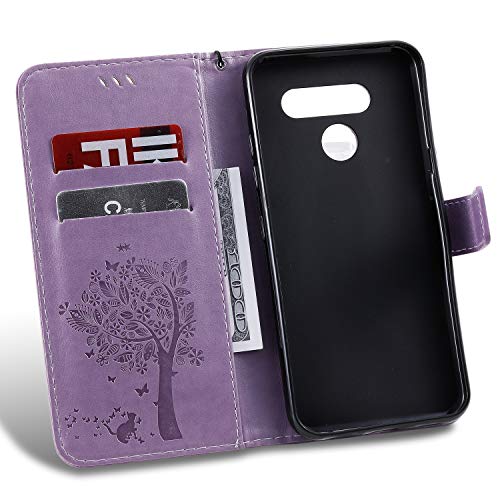 Zchen Cover LG Q60, Cover LG K50, Custodia Cover Protettiva in Cuoio Flip Libro Portafoglio Resistente Antiurto con Supporto per LG Q60, LG K50 (Gatto-Viola)