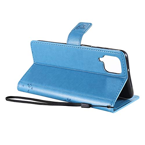 Zchen Cover per Galaxy A12/M12, Custodia Cover Protettiva in Cuoio Flip Libro Portafoglio Resistente Antiurto con Supporto per Samsung Galaxy A12/M12 (Gatto-Blu)