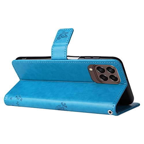 Zchen Cover per Galaxy M33 5G, Custodia Cover Protettiva in Cuoio Flip Libro Portafoglio Resistente Antiurto con Supporto per Samsung Galaxy M33 5G (Gatto-Blu)