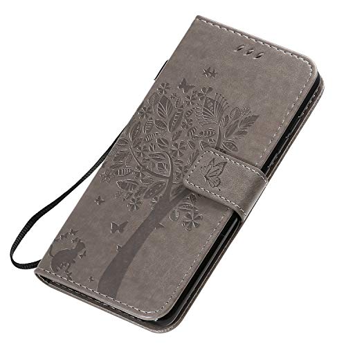 Zchen Cover per Galaxy A51, Custodia Cover Protettiva in Cuoio Flip Libro Portafoglio Resistente Antiurto con Supporto per Samsung Galaxy A51 (Gatto-Grigio)