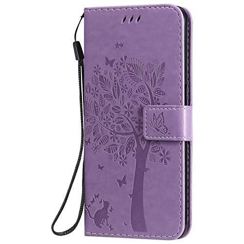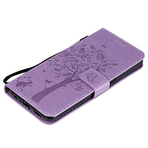Zchen Cover per Oppo A72 (6,5 Pollici), Custodia Cover Protettiva in Cuoio Flip Libro Portafoglio Resistente Antiurto con Supporto per Oppo A72/Oppo A52 (Gatto-Viola)
