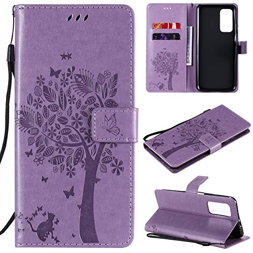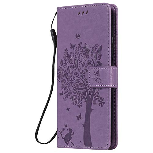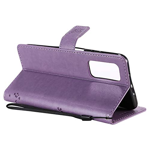 Zchen Cover per Poco M3 PRO 5G (6,5 Pollici), Custodia Cover Protettiva in Cuoio Flip Libro Portafoglio Resistente Antiurto con Supporto per Xiaomi Poco M3 PRO 5G/Redmi Note 10 5G (Gatto-Viola)