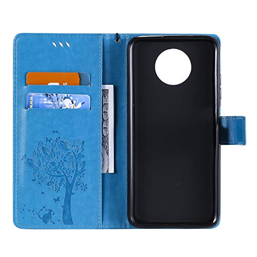 Zchen Cover per Redmi Note 9T, Custodia Cover Protettiva in Cuoio Flip Libro Portafoglio Resistente Antiurto con Supporto per Xiaomi Redmi Note 9T (Gatto-Blu)