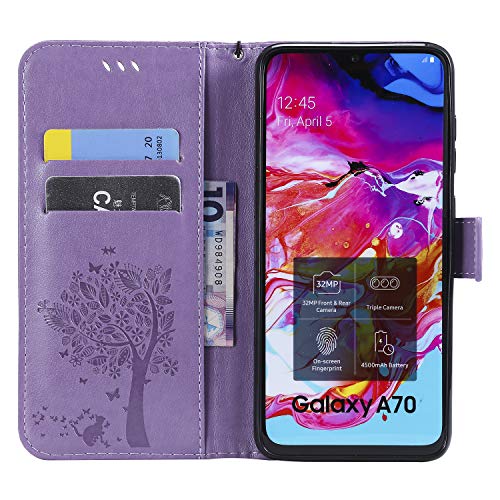 Zchen Cover Samsung Galaxy A70, Custodia Cover Protettiva in Cuoio Flip Libro Portafoglio Resistente Antiurto con Supporto per Samsung Galaxy A70 (Albero-Viola)