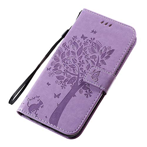 Zchen Cover Xiaomi Redmi 8, Custodia Cover Protettiva in Cuoio Flip Libro Portafoglio Resistente Antiurto con Supporto per Xiaomi Redmi 8 (Gatto-Viola)