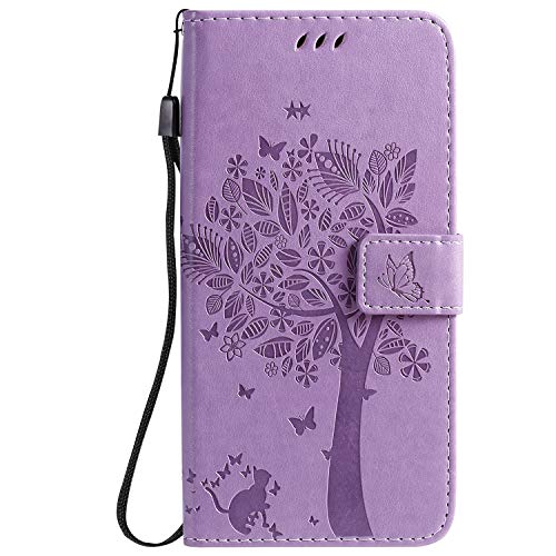 Zchen Cover Xiaomi Redmi Note 8T, Custodia Cover Protettiva in Cuoio Flip Libro Portafoglio Resistente Antiurto con Supporto per Xiaomi Redmi Note 8T (Gatto-Viola)