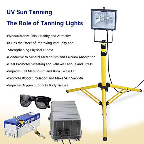 Zdcdy Lampada Abbronzante Facciale, 300W Lampada Abbronzante per Casa con Due staffe opzionali e Occhiali di Sicurezza, Lampada Solare Abbronzante UVA 315-400nm per Viso Corpo,B