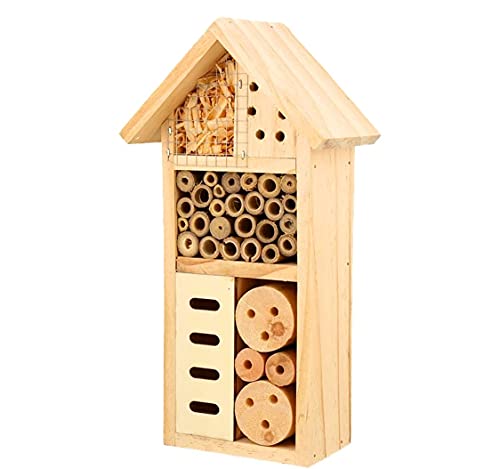 ZDTrading Casetta per insetti per terrazza, balcone o giardino, da appendere, non trattata, in vero legno, resistente alle intemperie, 26 x 8,5 x 13,5 cm
