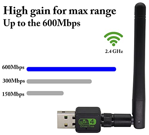 ZdyCGTime Adattatore USB Wireless 600mbps,Scheda di Rete Wireless Dual-Band con Antenna ad Alto Guadagno 2.4GHz USB2.0 5dBi,Trasmettitore Wireless USB WiFi,Adatta per PC Desktop,Laptop ECC.(1Pezzo)
