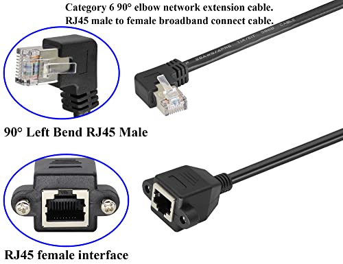 Estensore Ethernet RJ45 standard FTP Cat 6. Connettore 1: Spina maschio schermata RJ45 Cat 6 a 90 gradi (Angolata a sinistra),Connettore 2: Spina femmina per foro di montaggio a pannello a vite schermata Cat 6 RJ45,Funziona con qualsiasi prolunga del cavo Ethernet.