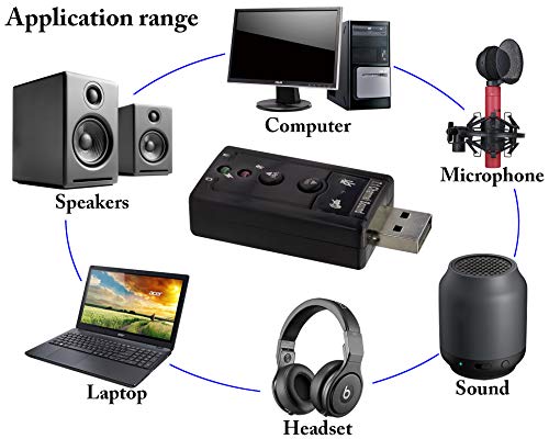 ZdyCGTime USB 2.0 Virtual7.1 Channel Adattatore audio stereo Scheda audio esterna,con porte audio e microfono da 3,5 mm, amplificatore interno e controlli del volume. Plug and play. (Nero)