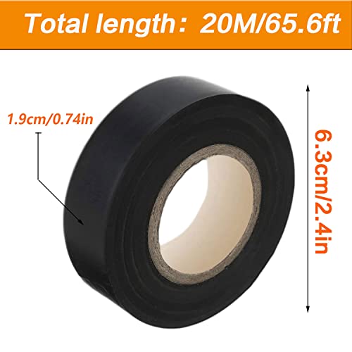 Dimensioni: Nastro elettrico nero larghezza 19 mm / 0,74 pollici, lunghezza 20 m, diametro 6.3cm.