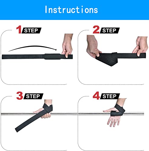 ZEACCT Cinghie Sollevamento Pesi, Fasce da Polso per Allenamento Imbottitura per Aiutare Impugnatura, Stacco da Terra Powerlifting Bodybuilding Fitness Palestra Protezione Donne Uomini - Nero