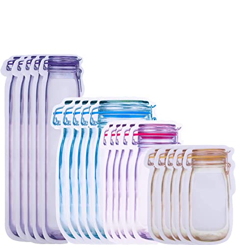 【Dimensioni】 Riceverai 20 sacchetti per la conservazione degli alimenti con chiusura lampo in barattolo di vetro in 4 diverse dimensioni. La scelta multipla può soddisfare le tue diverse esigenze quotidiane, un buon aiuto per la conservazione e l'organizzazione degli alimenti.