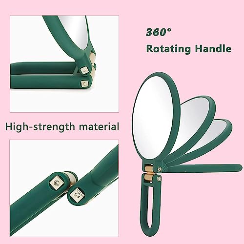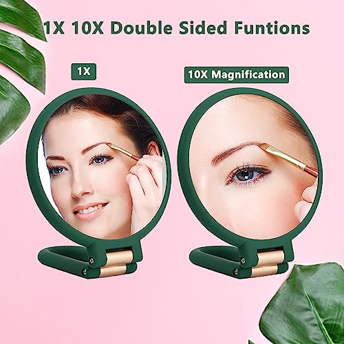 ZEACCT Specchio con Manico Pieghevole Regolabile, Doppio Lato Specchio da Trucco Sospeso, con Ingrandimento 10X + Normale Specchio, Pieghevole Portatile Specchio, per uso Palmare, Tavolo e Viaggio