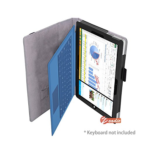 Zeadio Slim Custodia in Pelle PU Case Cover con Supporto per Microsoft Surface PRO 3 (3rd Generation) Windows 8.1 (12 inch) Tablet - Nero