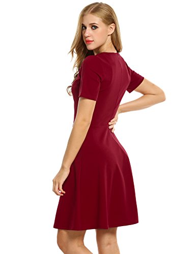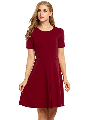Zeagoo, abito da donna a maniche corte, girocollo, abito da skater, linea Basic A, lunghezza al ginocchio, elasticizzato, elegante, in cotone, per feste, estivo, con chiusura lampo
