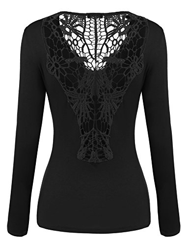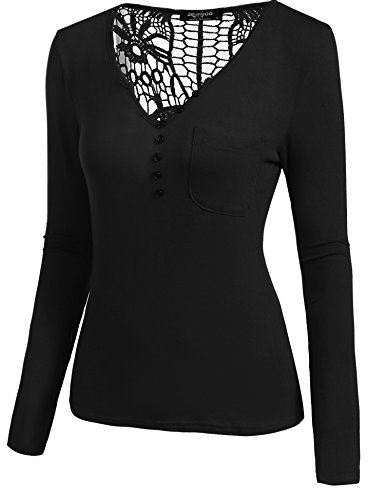 Zeagoo - Maglia da donna in cotone e pizzo, a maniche lunghe, Slim Fit