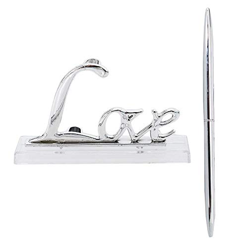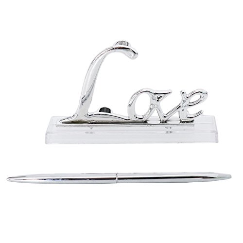 Penna per firma matrimonio in argento e supporto per firma degli ospiti.