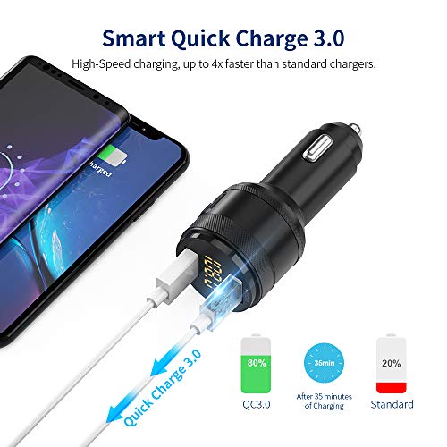 【Ricarica rapida Smart QC 3.0】 Il trasmettitore automatico Bluetooth ha due porte USB e può caricare due dispositivi contemporaneamente. Una è la porta USB QC 3.0 per una ricarica rapida, 4 volte più veloce dei caricabatterie standard. (Compatibile con: QC2.0, Hua Wei FCP, Samsung e HTC.) Al massimo delle prestazioni, l'efficienza di ricarica è superiore all'80%, in modo che il tuo dispositivo possa essere ricaricato completamente in breve tempo
