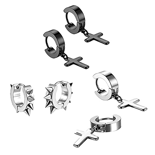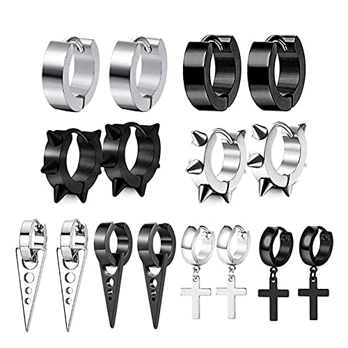 Zeayebsr 8 Paia Acciaio Inossidabile Orecchini da Uomo Donna Punk Orecchino Cerchio Orecchino Piercing Orecchini Crocifisso