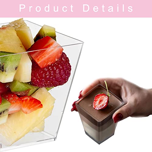 【Ampie Applicazioni】 Le coppe quadrate da dessert sono un modo eccellente per servire piatti caldi e freddi, dessert, gelati, parfait, gelatine, budini, mousse, yogurt, caramelle, ma anche macedonie, antipasti, salse cremose, salsa, ecc. Ideali per