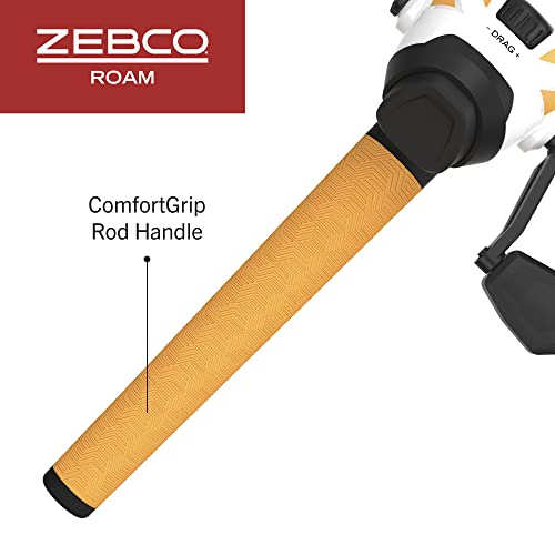 Zebco Roam Spincast Reel e canna da pesca Combo 1,8 m 2 pezzi in fibra di vetro con impugnatura ComfortGrip, mulinello da pesca QuickSet anti-inversione pre-bobina con 4,5 kg Zebco Line, arancione