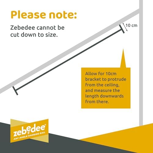 Zebedee Any Angle - Barra appendiabiti inclinata inclinata per armadi camera da letto mansardata, sotto grondaia, soffitto a tetto spiovente, deposito sottoscala(800 mm)