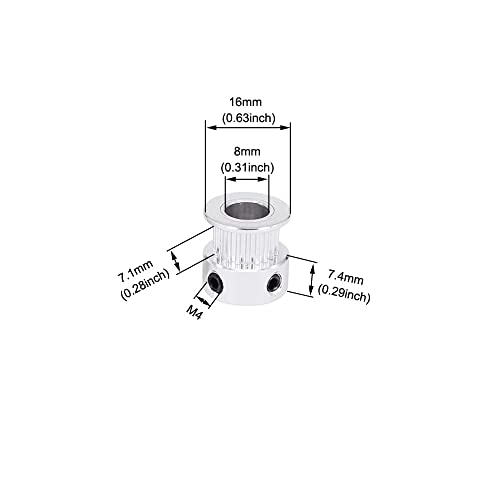Materiale della puleggia GT2: realizzato in lega di alluminio di alta qualità, trattamento di ossidazione superficiale, durevole, pregevole fattura e alta precisione di trasmissione