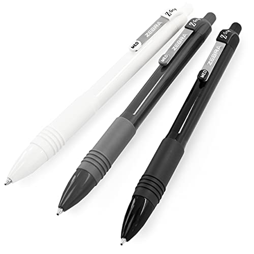 Zebra Z-Grip Smooth - Penna a sfera retrattile, monocromatica, set da 3, inchiostro nero