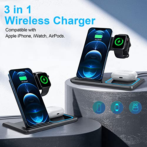 ZEBRE Caricatore Wireless 3 in 1 Pieghevole Ricarica Compatibile con iphone 14 13 12 11 Pro Max/Plus/XR XS Base Stazione Ricarica Wireless Docking Station Compatibile con Apple Watch e Airpods
