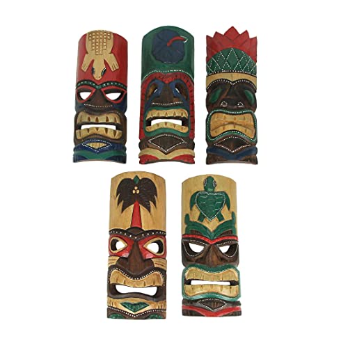 Zeckos Set di cinque maschere decorative da parete in legno a forma di isola da 30 cm