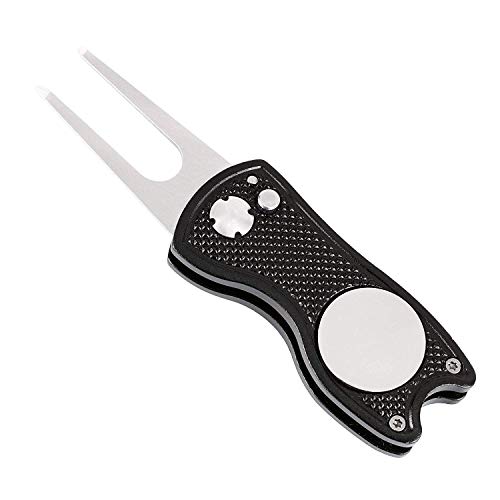 Zeeanker Forcella da Golf Divot Riparare Il Pitchmark, con Segna Palla Magnetico, in Acciaio Inossidabile di Alta qualità Magnetic Ball Marker Pitch Mark Mini Tool Leggero Portatile (Nero)
