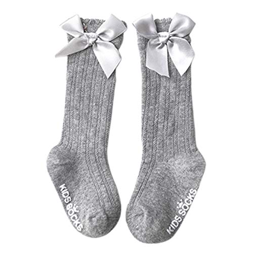 ZEFAN 0-4 anni bambini calzini alti al ginocchio, in cotone, unisex, con fiocco, regalo per bambini Grigio 0-24 mesi