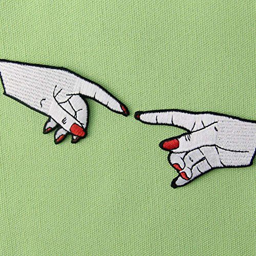 Dimensioni: Mano sinistra (8 cm x 4.2 cm), Mano destra (7.2 cm x 4.5 cm). La toppa è 100% ricamata.