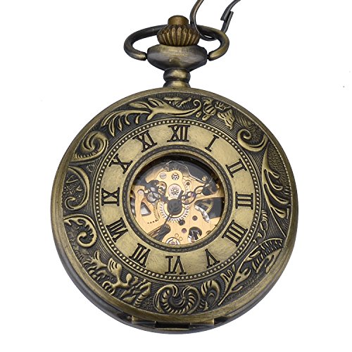 Zeiger Orologio Uomo da Tasca Orologio Steampunk Scheletro Meccanico Orologi Uomini Retro Pendente Orologio da Tasca W346-M (Bronze)
