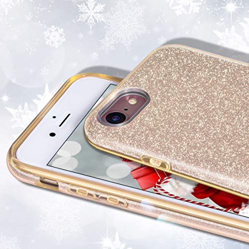 ZELAXY Custodia Compatibile per iPhone SE 2022 iPhone SE iPhone 7 iPhone 8 Cover Brillantini Ideale per Le Donne Custodia Rigida Antiscivolo con 3 Strati smontabile - Oro