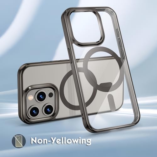 ZELAXY Custodia Magnetica Compatibile per la cover iPhone 15 Pro Trasparente Cristallina per Magsafe, non ingiallisce mai, cover protettiva- Grigio